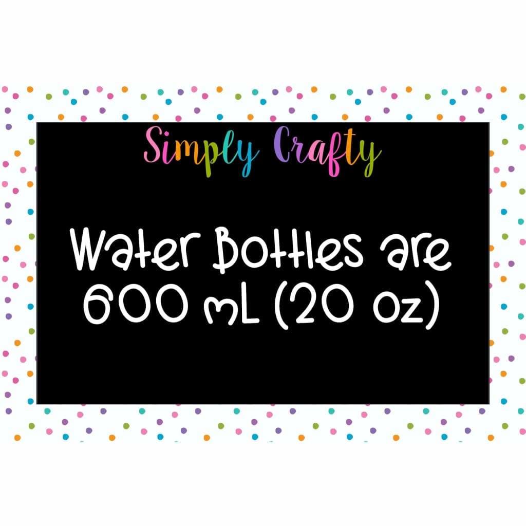 - Water bottles hold 600 mL (20 oz)