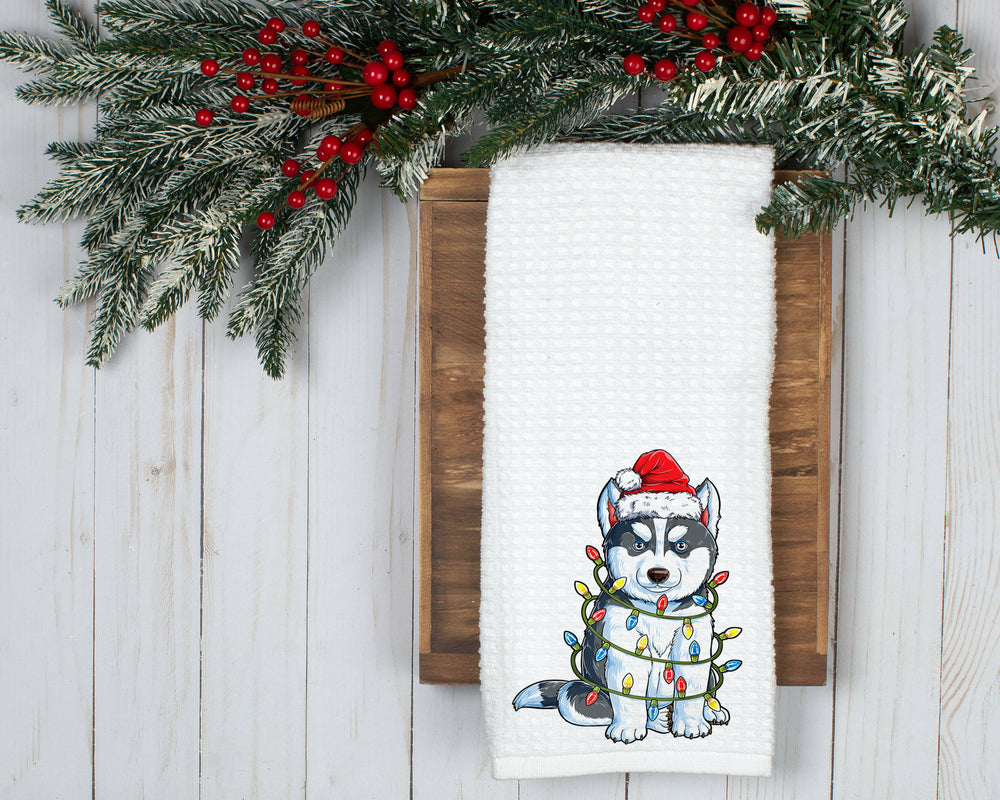 Christmas Siberian Husky Microfiber Waffle Weave Kitchen Towels